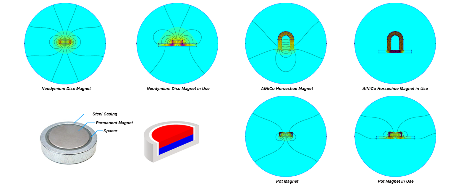 磁性組件的核心優(yōu)點(diǎn)在于提升磁強(qiáng)度、保護(hù)質(zhì)地較脆的永磁體在反復(fù)沖擊中避免破損,并同時能夠提供多樣化的應(yīng)用解決方案。毫無疑問的是,磁性吸力件堪稱是磁性組件中的典范,充分融合了這三個屬性:外殼不僅可以避免永磁體發(fā)生破損,又可在磁路中作為導(dǎo)磁通道,并能通過螺紋孔、掛鉤等結(jié)構(gòu)和配件設(shè)計(jì)適配不同應(yīng)用場景。磁性吸力件因此成為工業(yè)吸附、固定、夾持及移動操作的理想選擇。